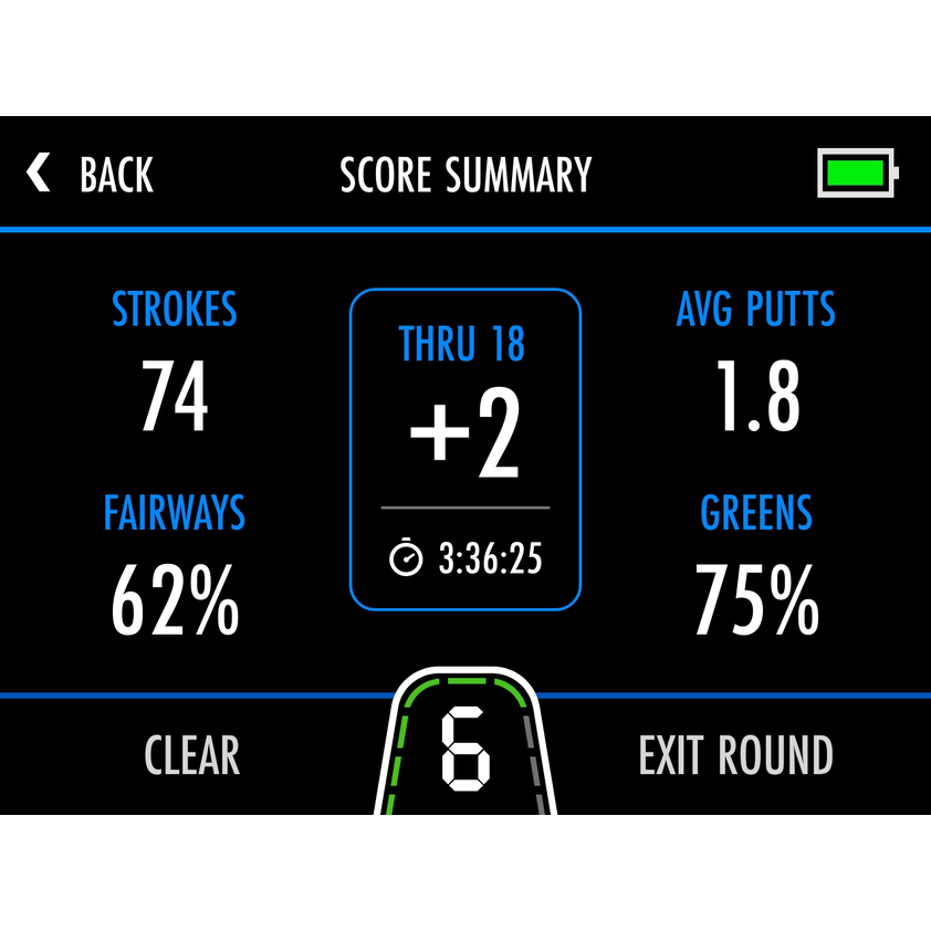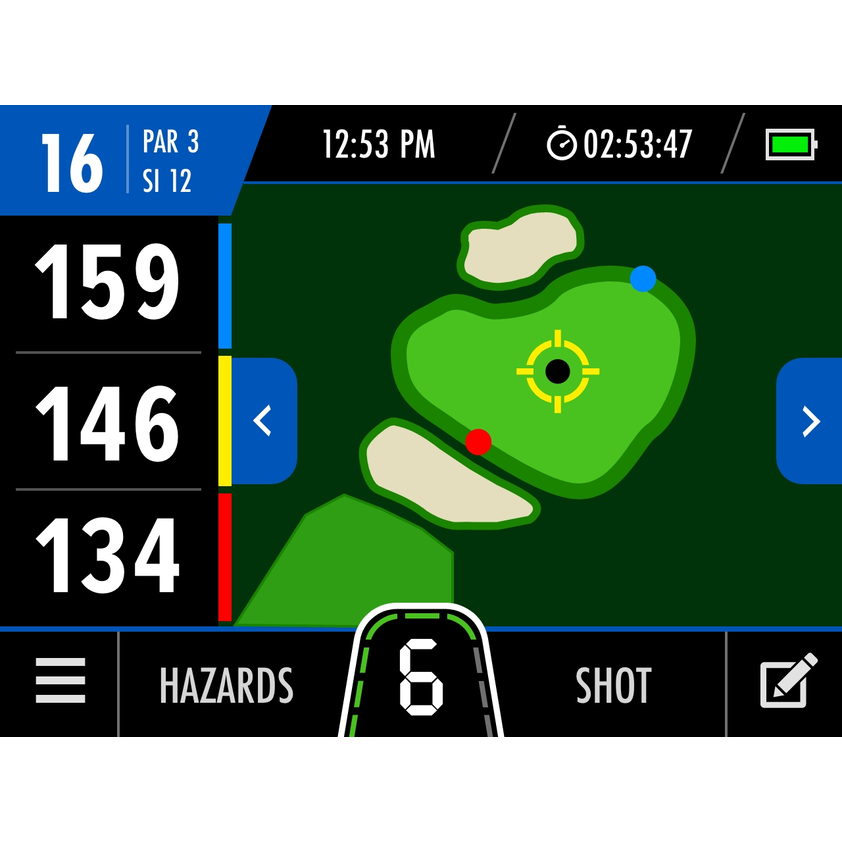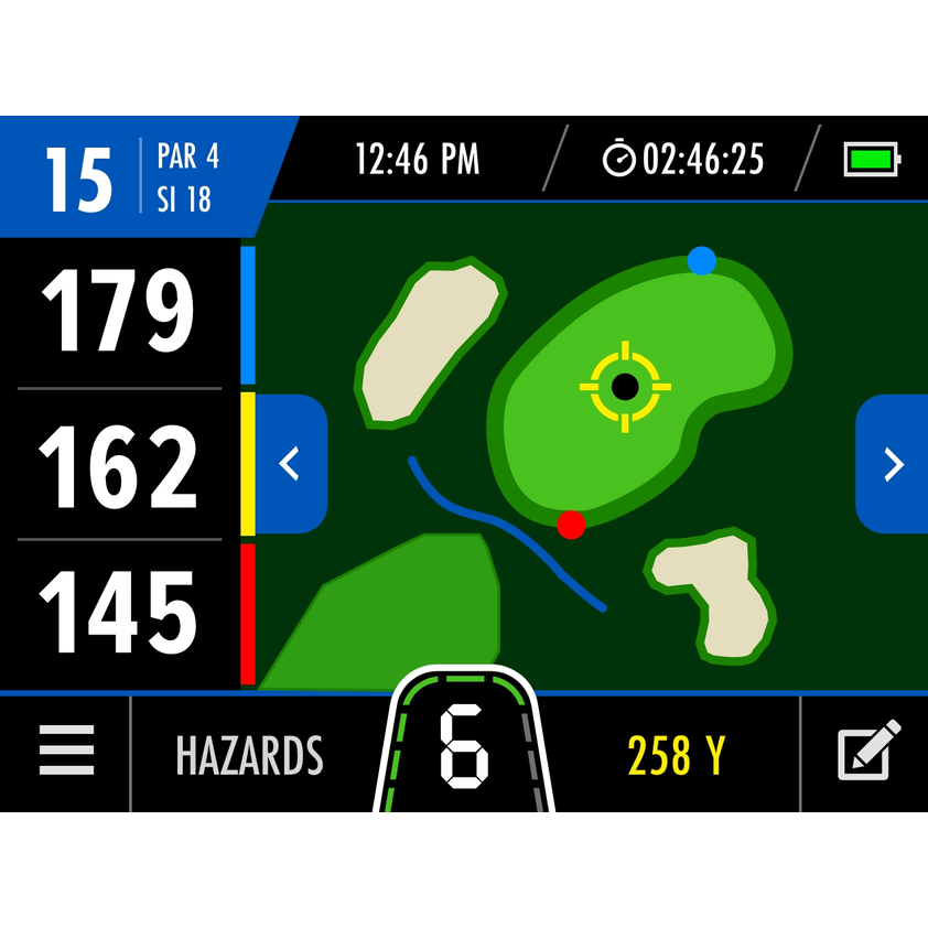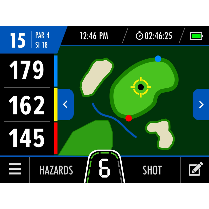 Displays the shape of the green with moveable pin for accurate shot planning